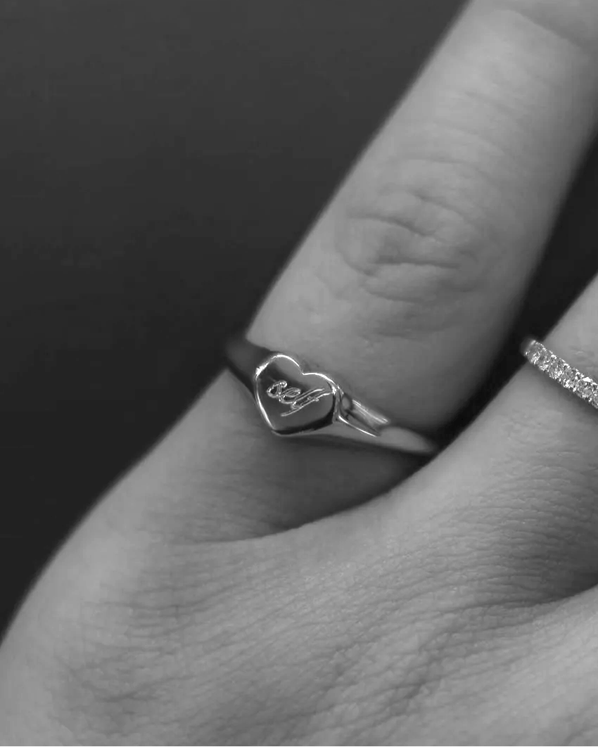 Shape: The ring features a classic signet design with a heart-shaped face, symbolizing love and affection.